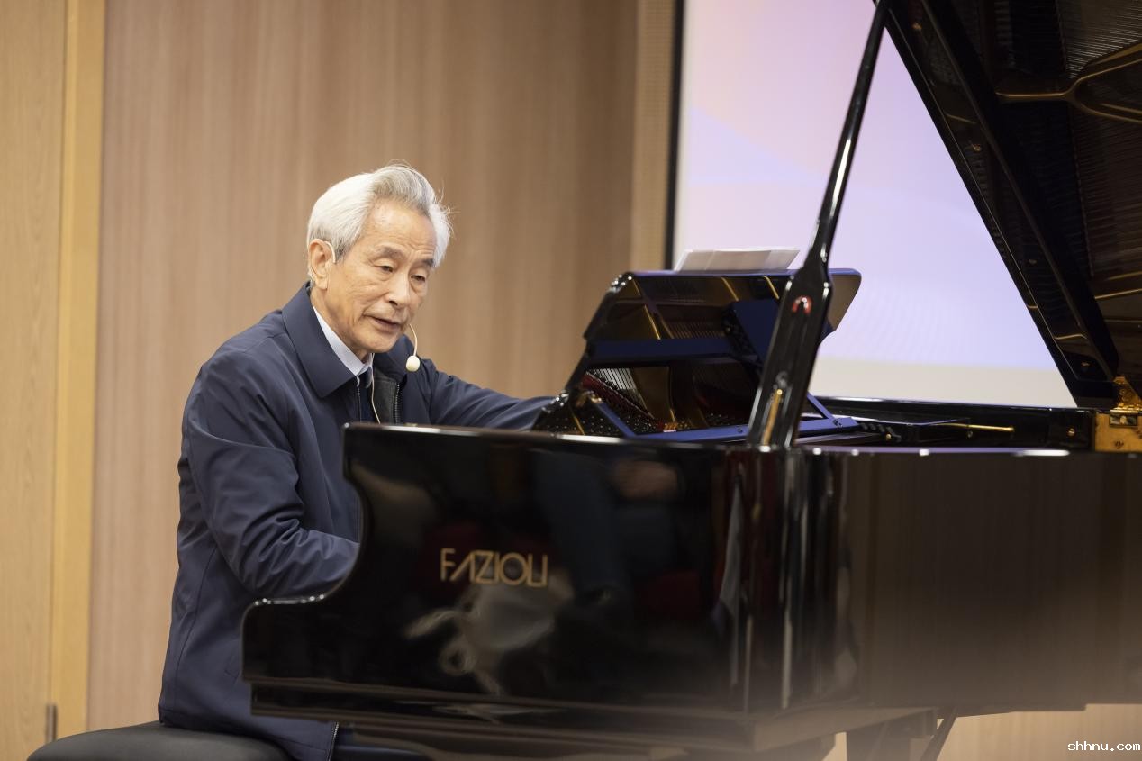 开幕式结束后,李未明教授以“钢琴弹唱的基石——和声的审美与应用”进行了演讲,他结合钢琴演奏,为在座各位呈现了一场学术性、专业性极强的讲座,令各位老师同学收获颇丰。