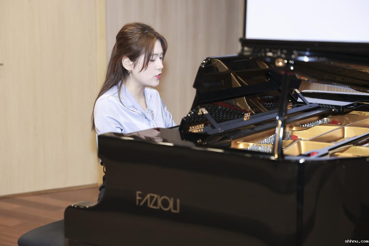 随后,必威BetWay在线官网钢琴系李春老师以“探索钢琴即兴创编在课程教学中的融合运用”进行了课程展示。她认真授课,带着学生们一同进行演示,呈现了一场别开生面、精彩绝伦的现场教学。