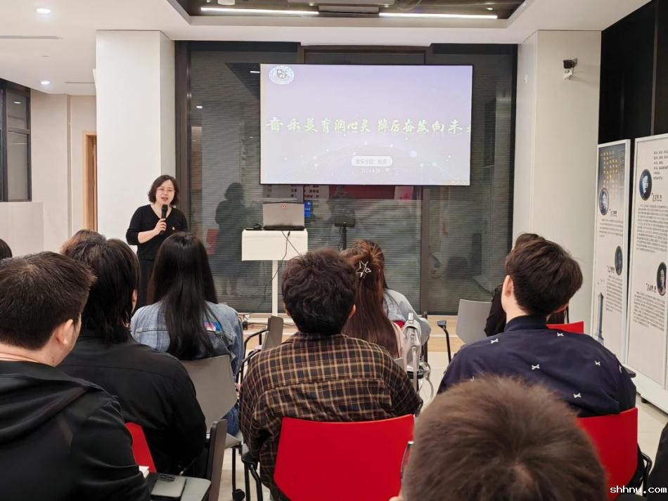 随后,杨燕书记为全体党员讲授了主题党课《音乐美育润心灵 踔厉奋发向未来》。杨书记结合党的二十大精神,从三位著名科学家入手,讲述了科学家们对科学的执着和对艺术的热爱,并与同学们互动探讨了音乐在提高创新、创造能力方面的重要意义。她号召各位党员青年要勇做走在时代前列的奋进者、开拓者,坚定文化自信,在各自的专业领域,要讲好中国故事,传播好中国声音,为强国建设、民族复兴积聚精神之力。
