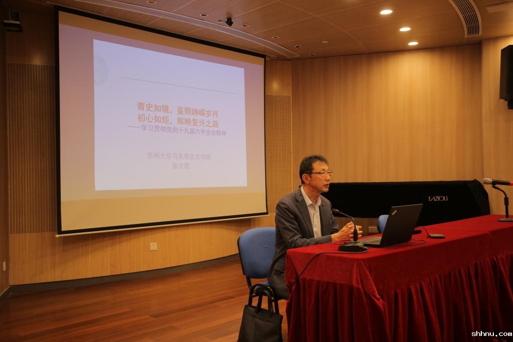 为了把学习宣传贯彻十九届六中全会精神不断引向深入,11月24日下午,学院党委邀请到苏州大学党的十九届六中全会精神宣讲团成员、马克思主义学院的张才君教授在二楼报告厅为全院师生做了题为“青史如镜,鉴照峥嵘岁月;初心如炬,辉映复兴之路——学习贯彻党的十九届六中全会精神”的辅导报告,报告采取主会场与分会场、线上线下相结合的方式进行。
