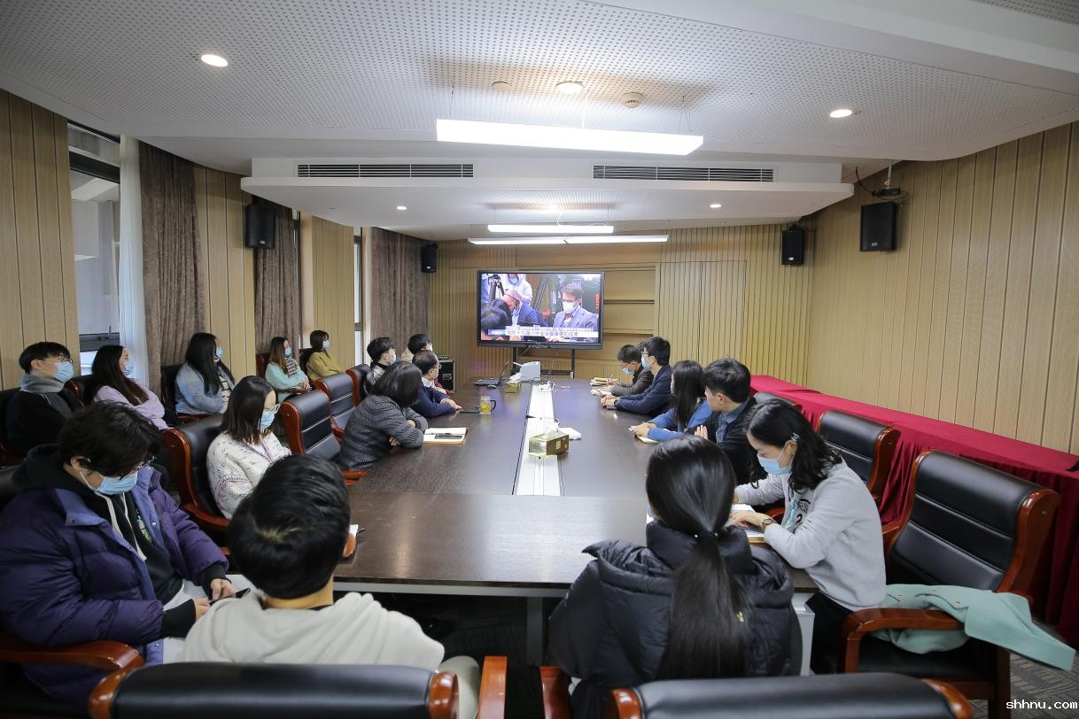 11月12日上午十点,学院领导班子和部分师生代表在505号楼会议室一同收看了党的十九届六中全会精神新闻发布会直播。