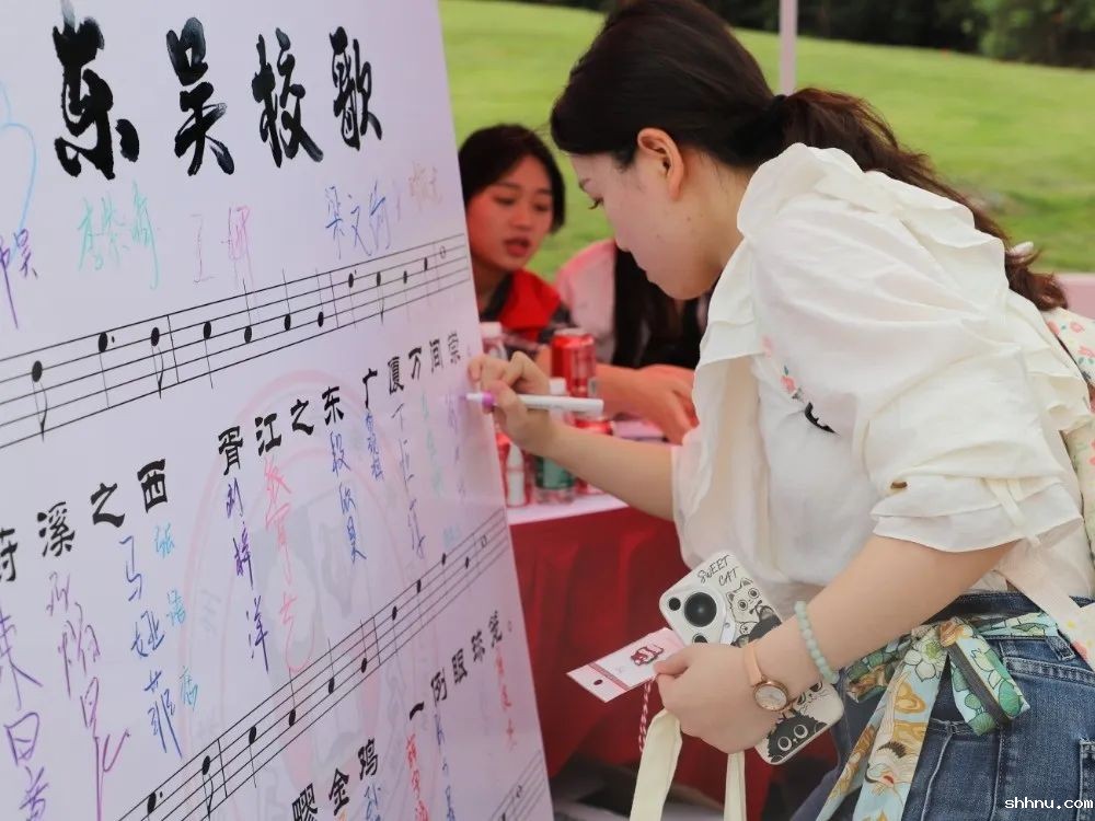 学院将苏州大学东吴校歌的旋律巧妙地改造成签到版,新生们在熟悉的乐谱下,一笔一划地写下自己的名字。