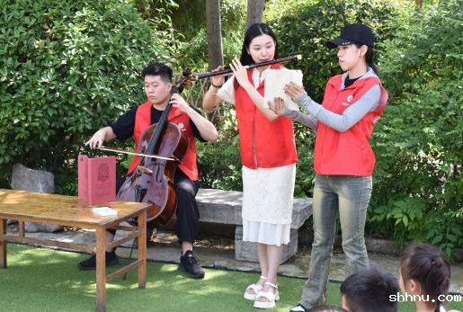 随后,团队成员运用学专业知识进行器乐表演,悠扬的旋律与清脆的声响交织在一起,让孩子们在音乐中感受音乐文化之美。