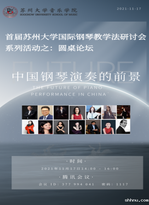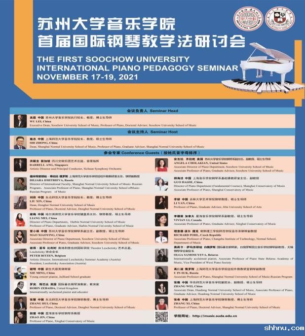 由苏州大学主办、必威BetWay在线官网承办的首届“苏州大学国际钢琴教学法研讨会”于2021年11月17日至2021年11月19日在苏州举行。研讨会邀请来自欧洲、北美及中国的世界级高水平古典音乐艺术家、教育家及青年教师,通过“线上+线下”的方式展开云端对话,聚焦钢琴教育的前沿动态与最新发展,从教育心理学、音乐脑科学、运动生理学和新科技等方面入手展开学术交流与课题。本次研讨会获得苏州大学国际合作交流处的大力支持,为期三天,由圆桌论坛和大师课讲座两部分组成。