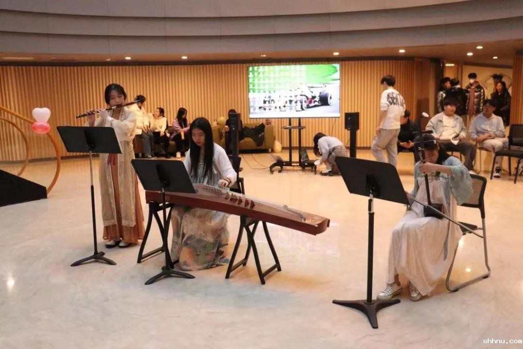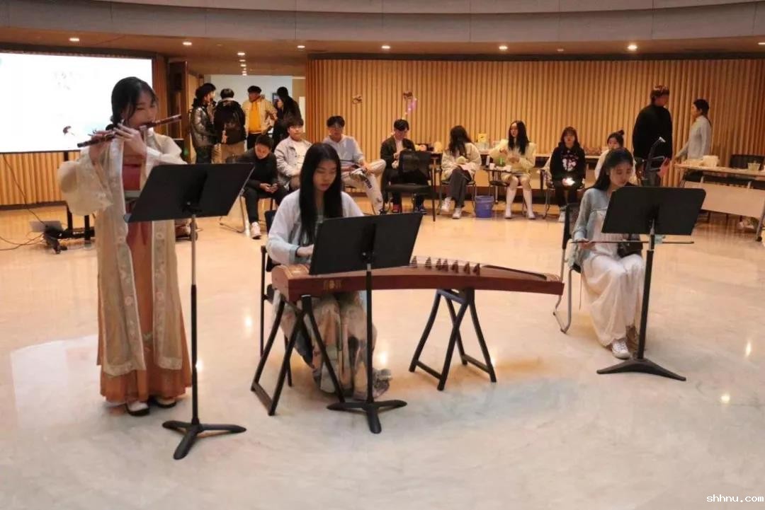 清脆的笛声伴随着悠扬的二胡音和优美的古筝声,余音袅袅,清脆与柔和相应,委婉与清亮并存,宛如天籁,怡人心脾。