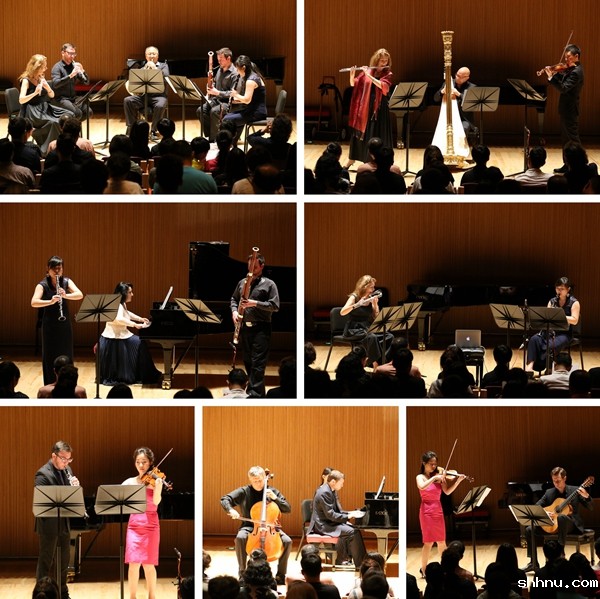 整场音乐会上,演奏家们依次演奏了莫扎特的《双簧管和小提琴歌剧二重奏》、舒曼的《幻想曲,作品73号》、德彪西的《长笛、中提琴和竖琴奏鸣曲》、麦可鲁尔的《同源》、格林卡的《悲怆钢琴、单簧管和巴松三重奏》、帕格尼尼的《吉他与小提琴A大调协奏奏鸣曲》和亨德密特的《小室内乐,作品24之二》,共七首曲目。
