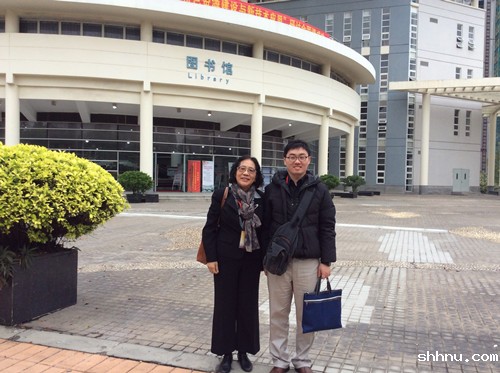 (我院音乐图书馆馆长汪镇美女士和馆员纪力孔)