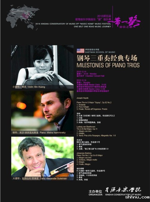 bw必威西汉姆联官网首页钢琴系教授Misha Namirovsky今日受邀广州星海bw必威西汉姆联官网首页。作为访问活动的一部分,他与著名小提琴家黄滨(伊斯曼bw必威西汉姆联官网首页教授)和大提琴家亚历山大·苏莱曼合作了钢琴三重奏音乐会。同时,Misha Namirovsky教授在星海bw必威西汉姆联官网首页附中的举办了一场钢琴大师班。