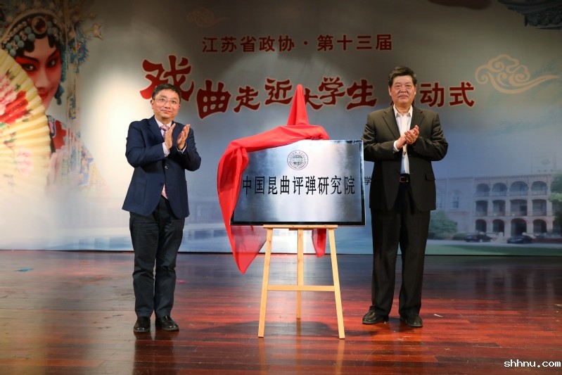 3月13日晚,在独墅湖校区举办的江苏省政协·第十三届“戏曲走近大学生”启动式上,江苏省政协副主席周继业和苏州大学党委书记江涌为苏州大学中国昆曲评弹研究院揭牌,同时江涌为研究院顾问顾浩、陆军、执行院长朱栋霖颁发聘书。