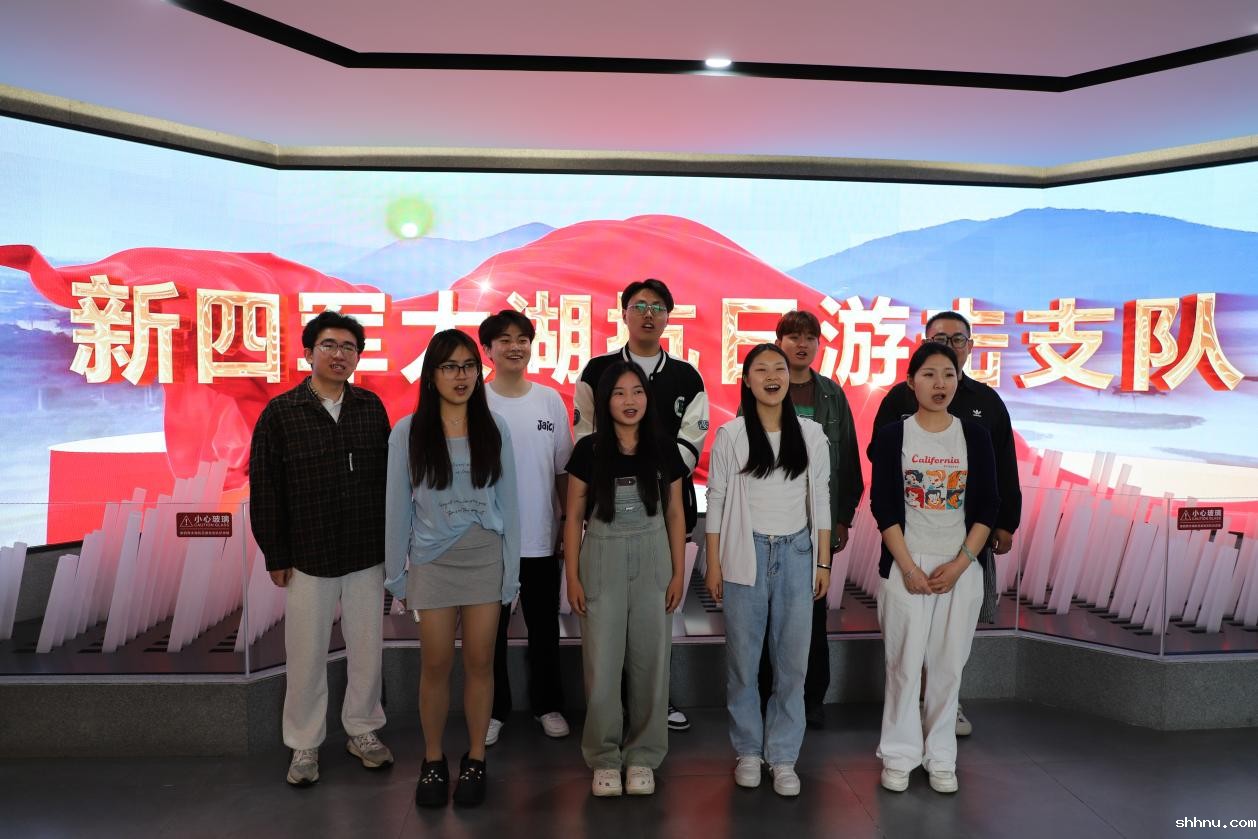 参观结束,沿着红色印记,部分党员同学在纪念馆情不自禁唱响红色旋律《游击队之歌》和《解放军军歌》,歌声慷慨激昂,振奋人心,仿佛回到了那段艰苦卓绝的革命岁月。大家用歌声表达对革命先烈的崇高敬意,传承着新四军太湖游击队不怕牺牲的斗争精神。